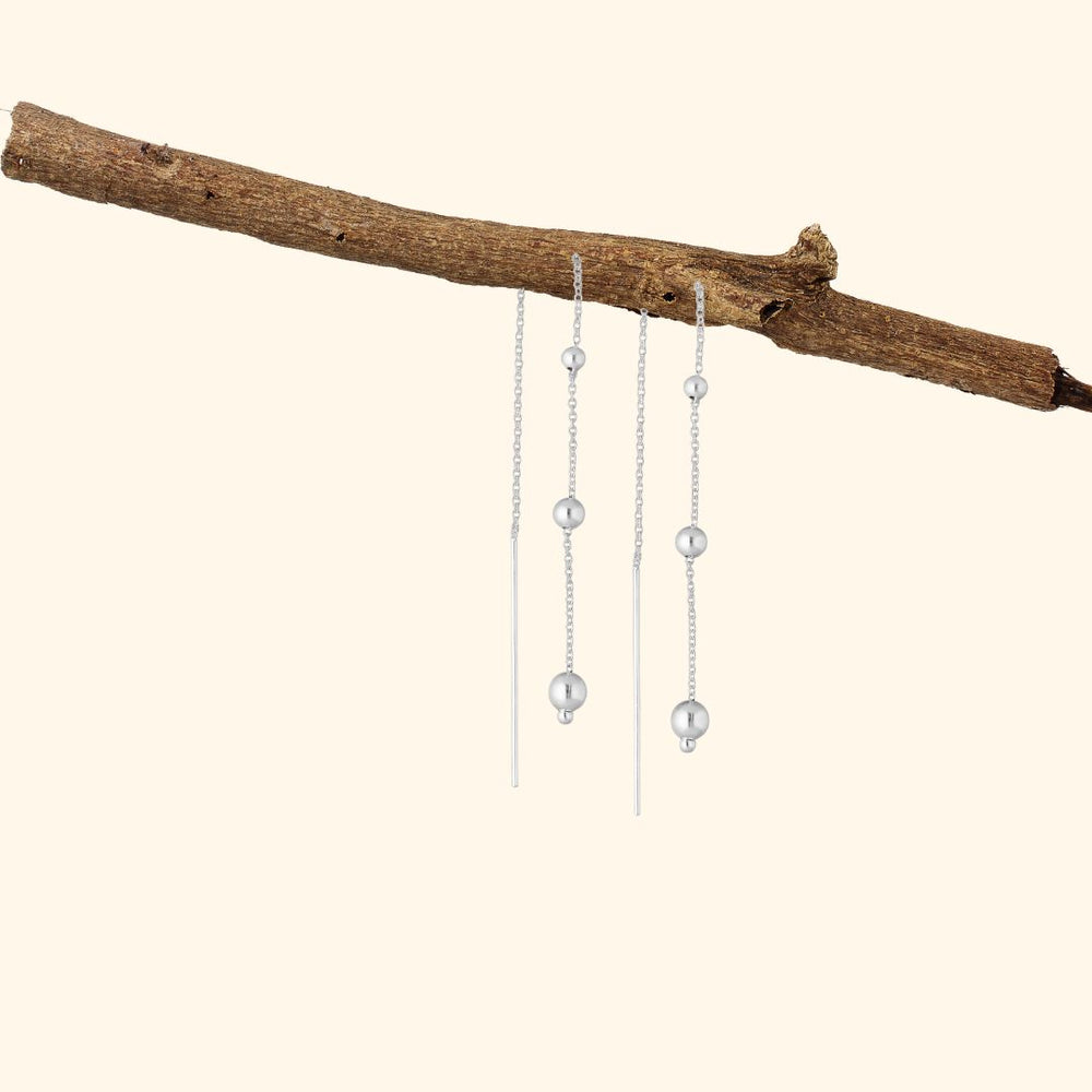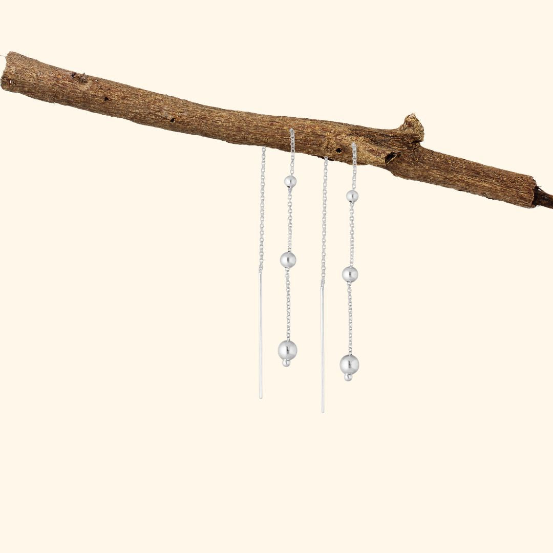 Boucles d'oreilles en argent 925 chaîne à 3 boules