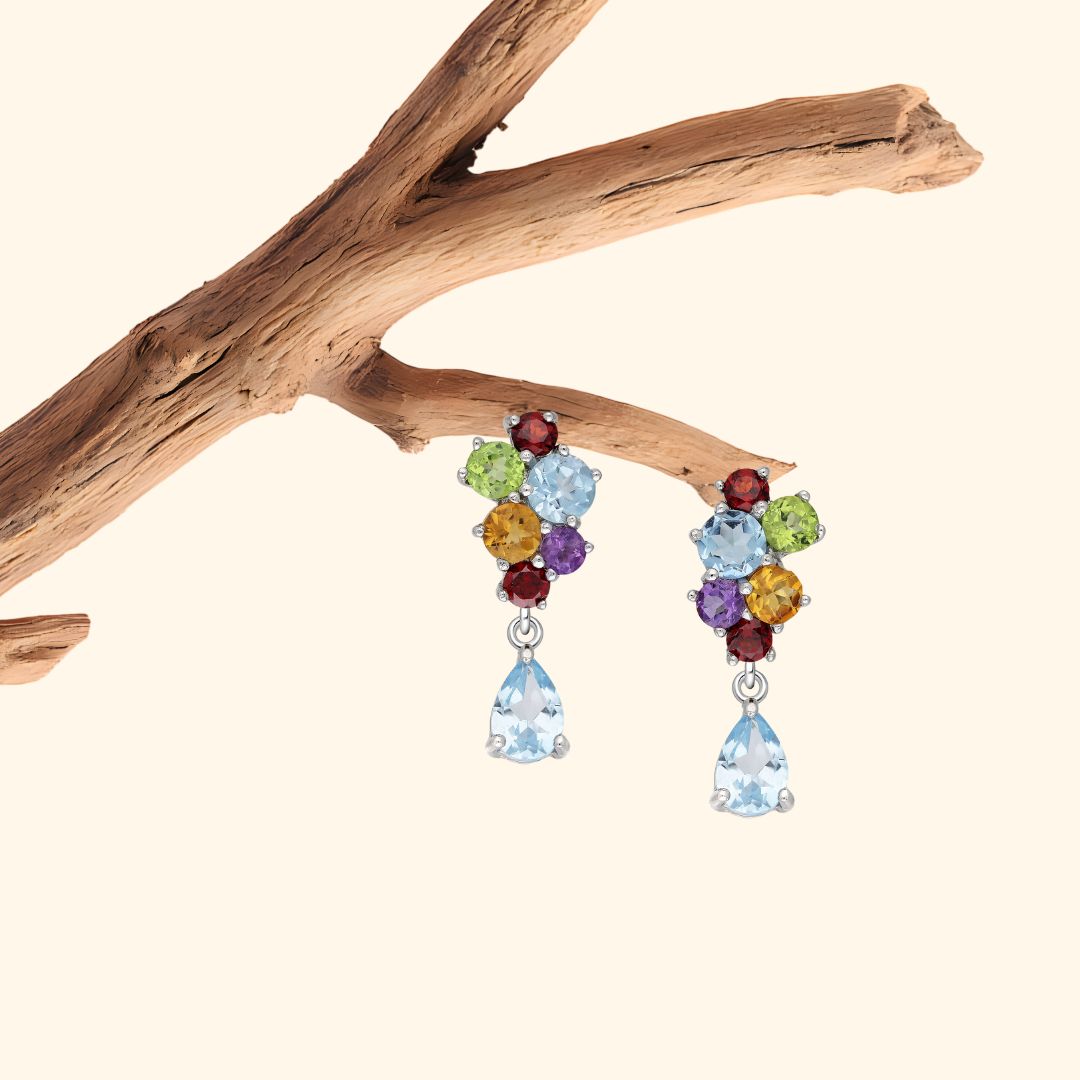 Pierres fines : Améthyste, citrine, grenat, péridot, topaze bleu ciel