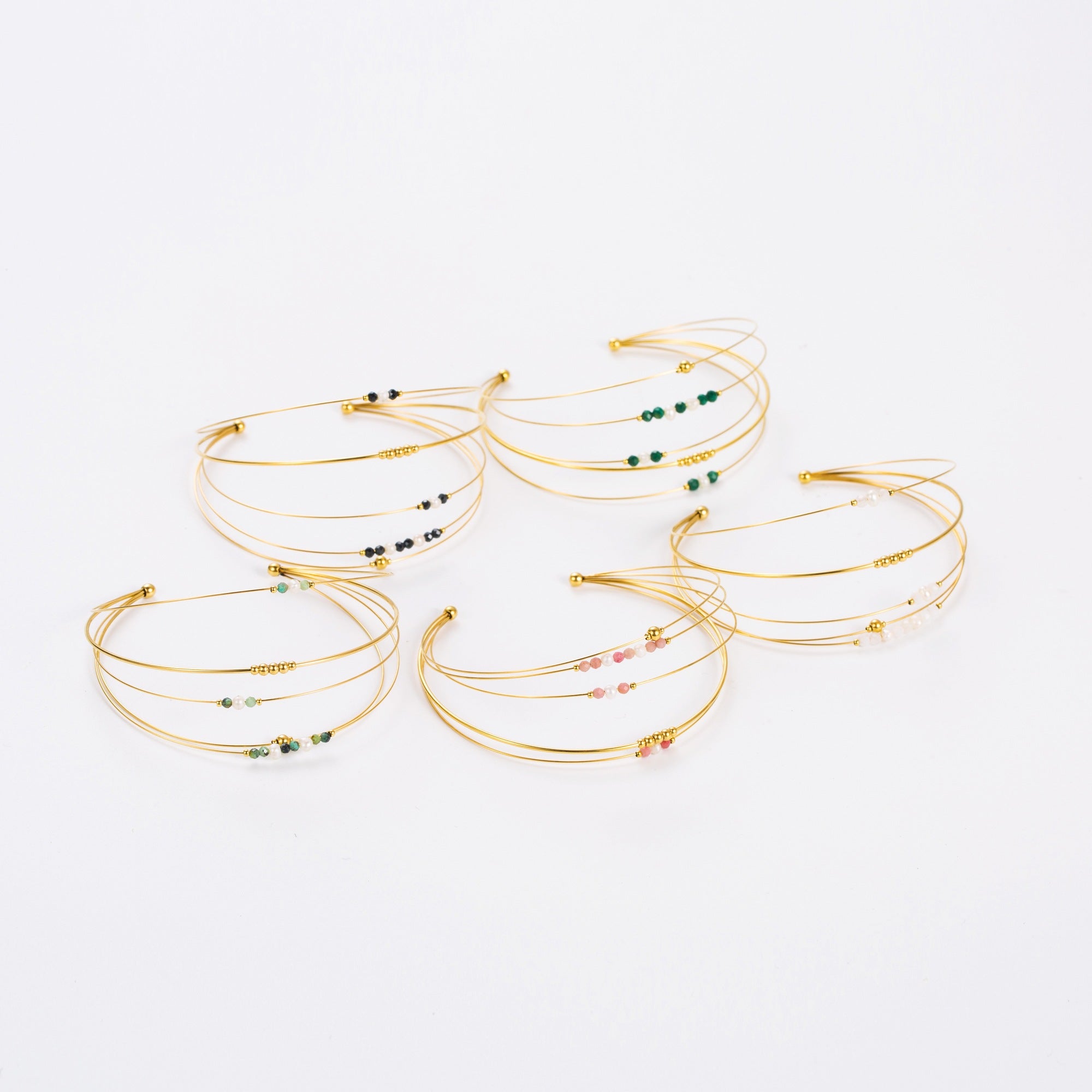 Bracelet en acier inoxydable doré multi fil / pierres naturelles