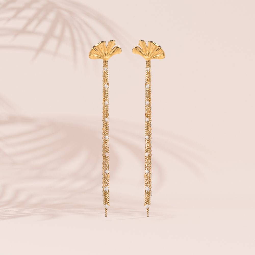 Boucles d'oreilles "feuille de ginko" en acier inoxydable doré / résine colorée